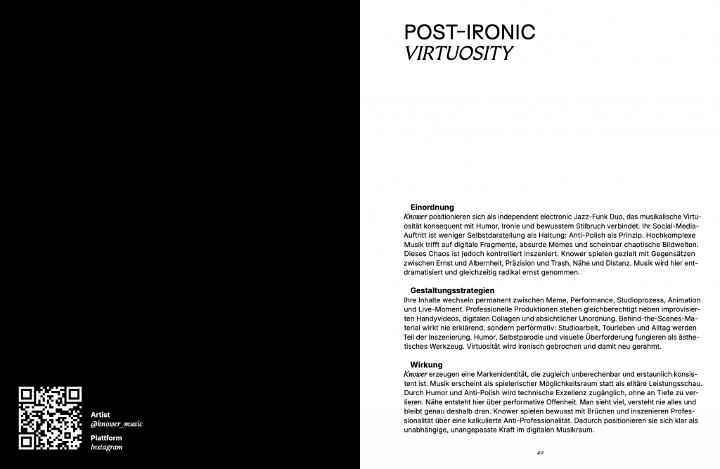 This master’s thesis investigates how content strategies on TikTok can contribute to the visibility of artistic practice in jazz. Situating TikTok within the broader digital transformation of music cultures, the study examines how platform logics, algorithmic structures, and short-form video aesthetics reshape the conditions under which jazz musicians can present their work. Rather than focusing on quantitative reach or marketing performance, the project explores how artistic attitude, improvisational processes, and individual expression can be translated into contemporary content formats.